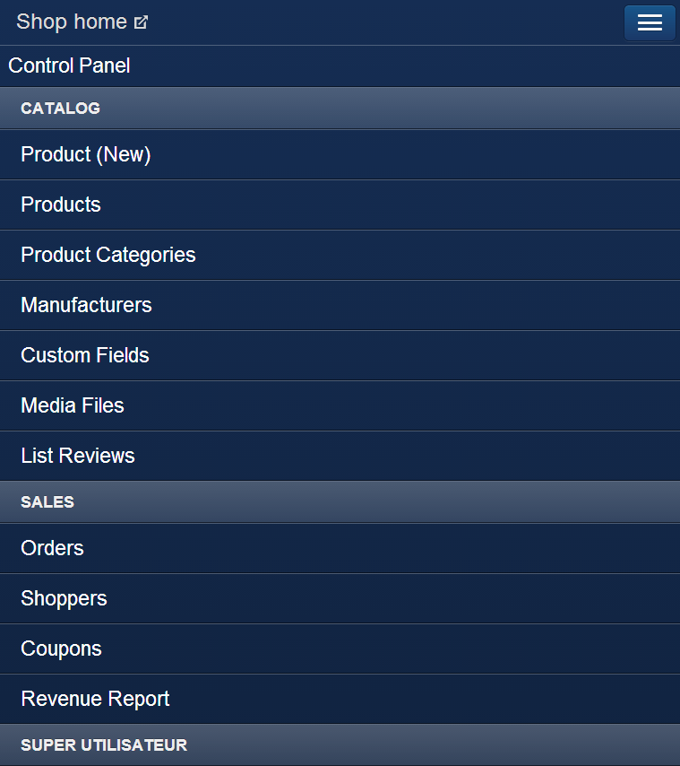 Administration complète de votre boutique en Front-End et non limité au produit et catégories.